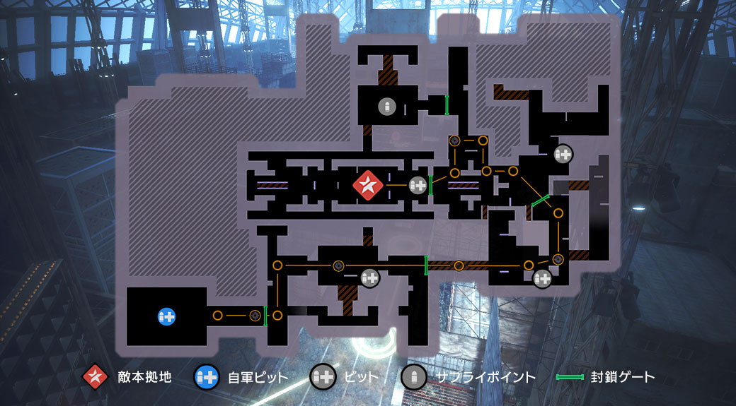 敵本拠地までの経路にはプレイヤーの進行を妨げる「封鎖ゲート」が存在します。